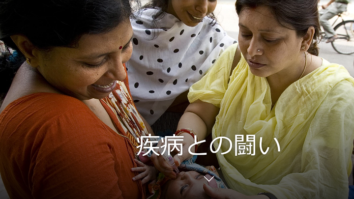 ポリオの撲滅。 私たちは、ポリオ(小児まひ)を世界から撲滅する活動で、大きな役割を果たしてきました。懸命な活動により、世界のほぼすべての国からポリオがなくなっただけでなく、エボラ出血熱などのほかの疾病の追跡システムにも活用できるインフラが構築されました。ポリオ撲滅の実現まであと少しです。