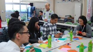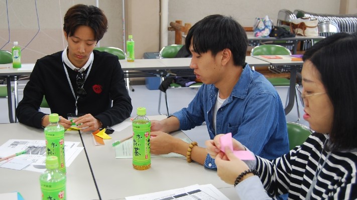 その後は日本の文化を体験する時間として『折り紙』を国際交流センターのスタッフの方よりご指導いただき、留学生同士の交流を深め、楽しい時間をすごしました。